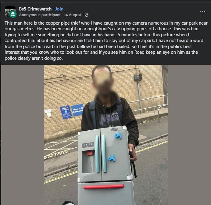 Our man Fabian, representing St George Troopers Hill for Labour, committed the cardinal sin of modern politics: he posted something on Facebook. Specifically, on the ‘Not Booty But... BS5’ community page (and yes, that name is as Bristol as it gets), someone shared pictures of a man accused of stealing gas pipes from outside homes and businesses in Easton and St George.