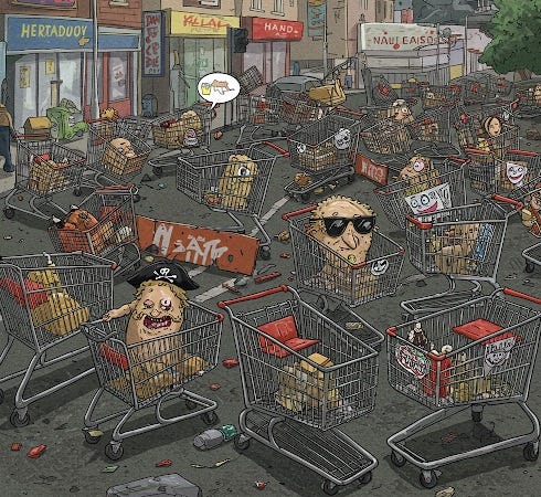 Some say they’re just dumped. I say they’re evolving. They’re becoming sentient, yearning for the open rails, dreaming of a life beyond the baked bean aisle.