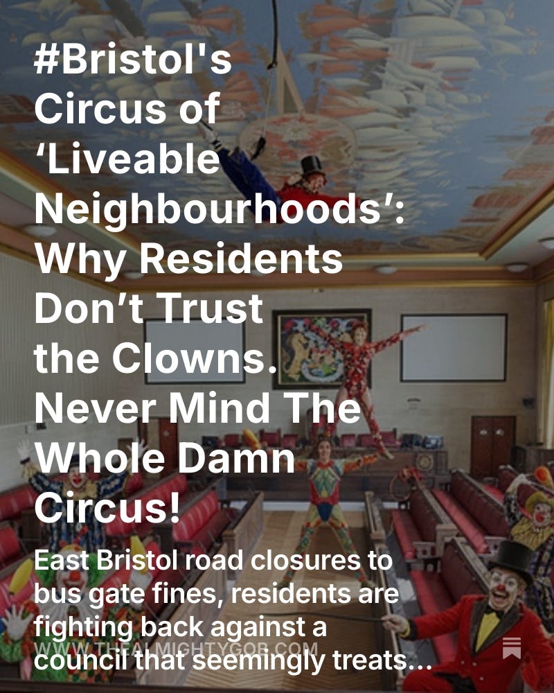 #Bristol's Circus of ‘Liveable Neighbourhoods’: Why Residents Don’t Trust the Clowns. Never Mind The Whole Damn Circus!
