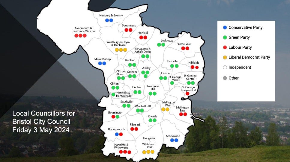 Affluent centre went Green. Flag-flying deprived areas went Labour. Greens also won gentrifying inner-city spots like Lawrence Hill and Ashley—younger demographics, transient populations who’ll move on before consequences land.