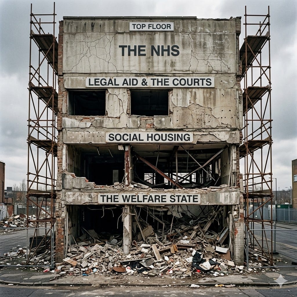 The NHS. Legal aid. Social housing at scale. A welfare state.