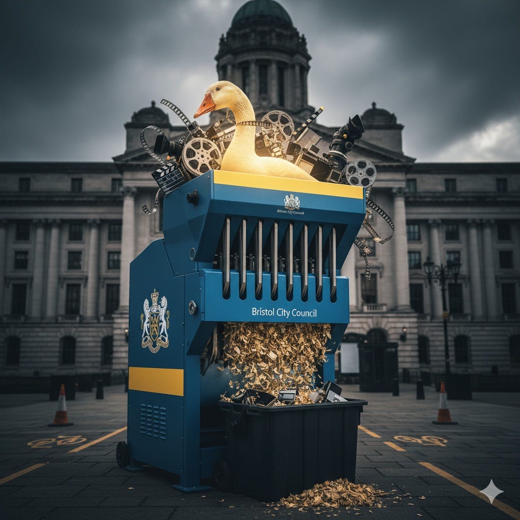 Bristol Council: “Our film industry brings in millions and employs hundreds of local people. Emergency meeting—how do we privatise it and probably f*ck it up completely while maintaining our commitment to sustainable urban planning?”