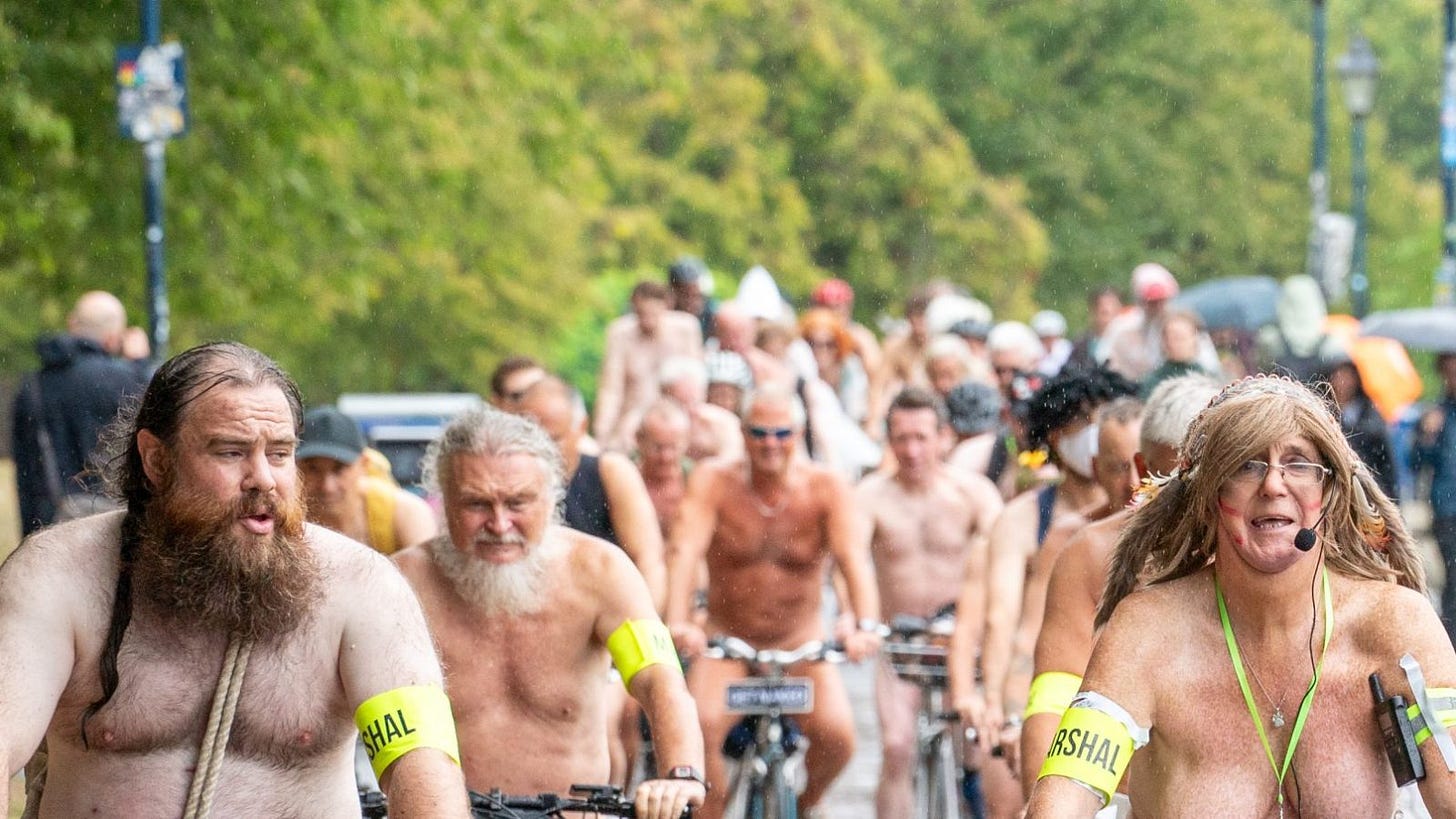 It’s the prim and almost (except for graffiti and idiot protesters) proper south versus the down-to-earth, say-it-like-it-is, and don't give one 'Scheiße' (the only word in German I know off by heart) what anyone thinks. With one exception, perhaps, and that's the World Naked Bike Ride I passed by in Castle Park this lunchtime. The willies of all shapes and sizes were out on display for this one day of the year when both male (mostly) and female can let it all hang out, complete with a corps of drums to send them off, by the way. Not the best day weather-wise admittedly, as it was just starting to rain as I passed by. But those smart enough to have seen the forecast before setting off from home would have left well prepared for this and packed a bar of soap, you know, to ensure they were fully cleansed by the time they reached the finish line, and a probable well-deserved tincture. I mean, why waste such an opportunity, when you can save the planet and our well-publicised water shortage during all the lovely summer sun we've enjoyed so far?