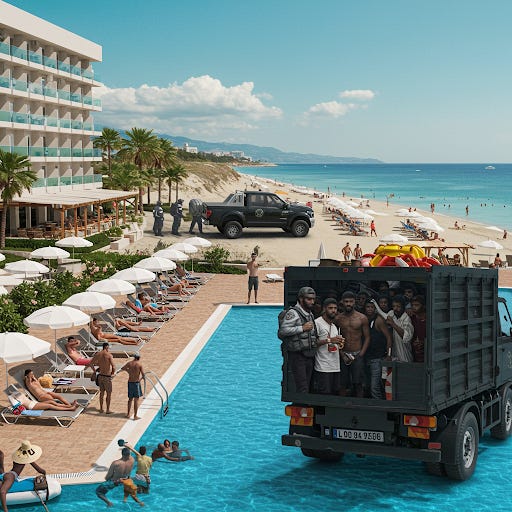 "Sun, Sand, and Smuggling: Your All-Inclusive Migrant Getaway!"