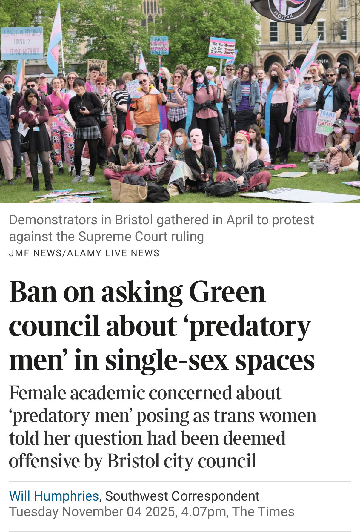People didn’t vote for these clowns to ban perfectly reasonable questions from academics. They voted for promises. They voted for a vision of Bristol where the trains run on time, the air is clean, and, crucially, the people in charge aren’t faffing about with ideological piffle.