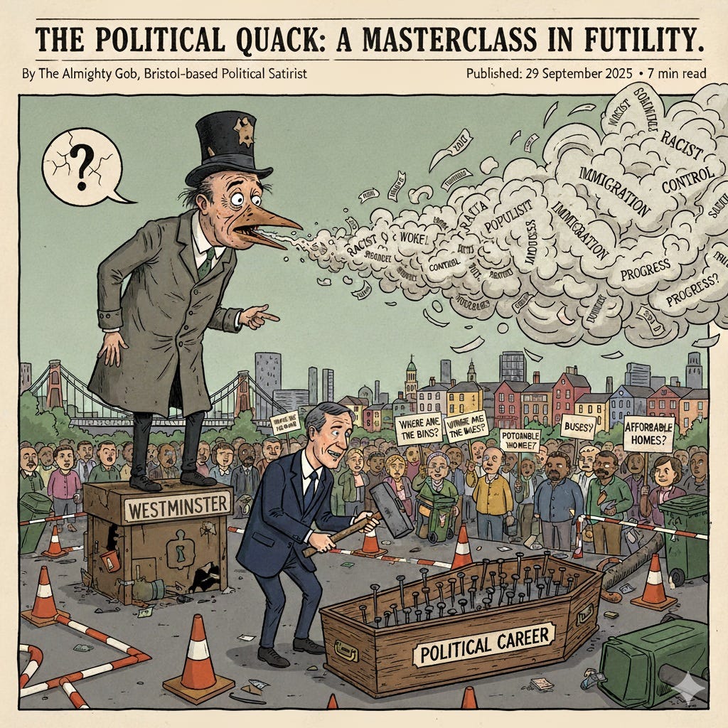 Had enough of political word games? Get satirical commentary from someone who’s watched Bristol’s Green experiment fail in real-time—no London bubble, no corporate filter, just honest takes from the South West.